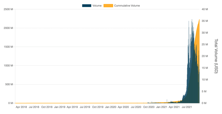 Another key piece of blockchain gaming is play-to-earn gaming. Back in May, I wrote about Axie Infinity in How People in the Philippines Are Making Money in the Metaverse. Since then, Axie volume has exploded: