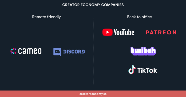 Of course, I have to end this post with remote work policies for creator economy companies. Unfortunately, outside of Cameo, top companies in this space are largely not remote first. I haven’t looked into earlier-stage companies, but I imagine that many are more remote-friendly.