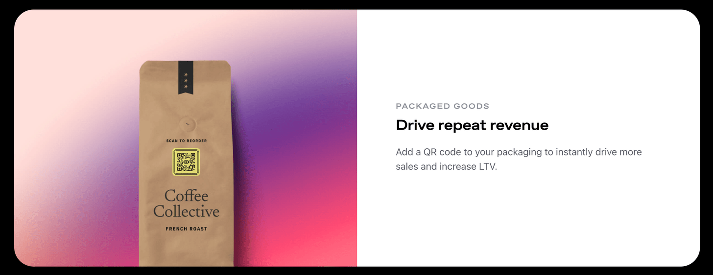 Rebuy shows your customers personalized discounts to incentive them to transact with you again. Disco offers a post-purchase portal that shows your customers other brands, extending the customer journey and giving you the opportunity to do the same on other sites; this also acts as a customer acquisition channel, building on that topic from Part I. And Batch allows brands to add a QR code to their packaging, driving seamless repeat purchase behavior.
