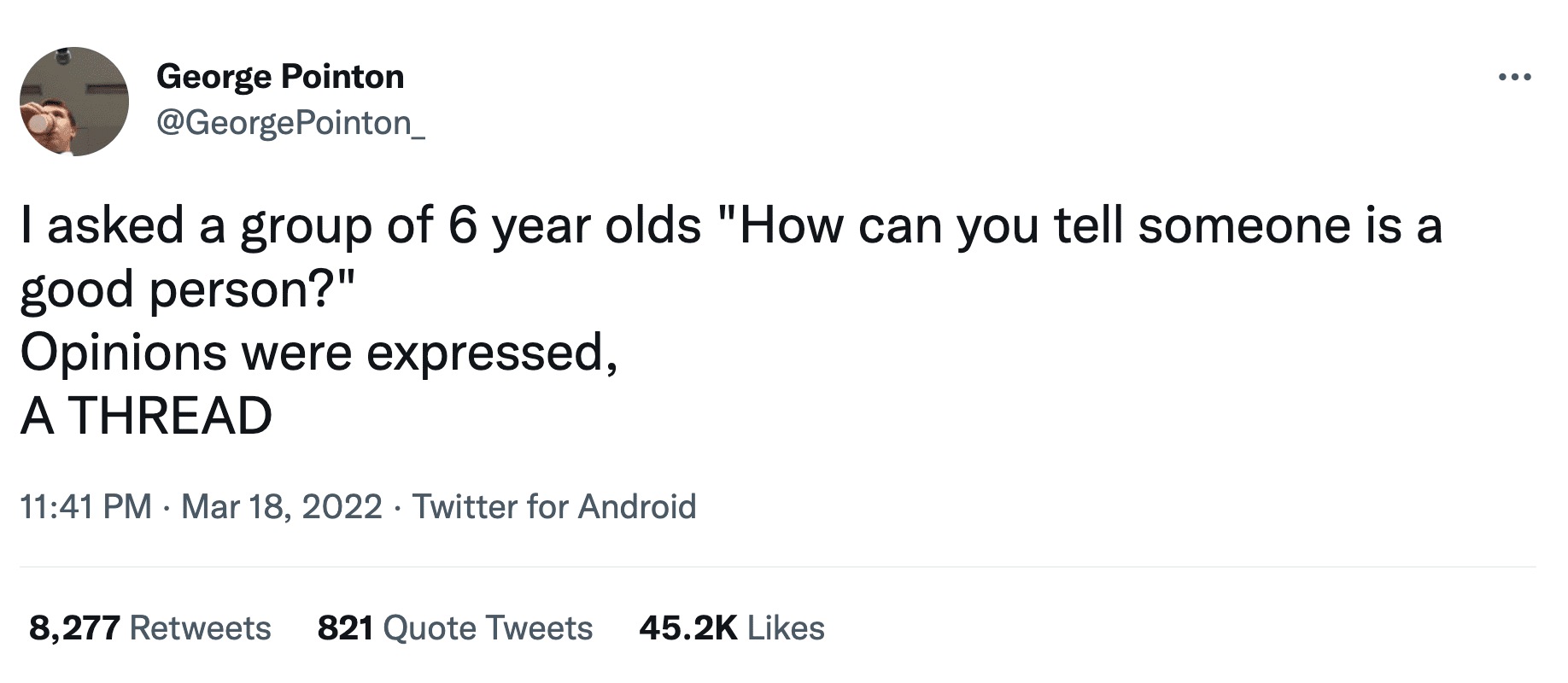 Twitter Threads rarely have personal stories like this. They’re normally non-fiction-type threads. Telling a personal story in this format is a huge challenge.