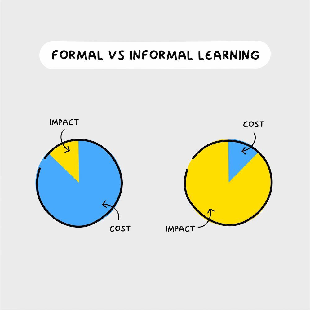The impact of informal learning is higher because it doesn’t feel like learning. It feels like chasing your curiosity and following your interests — and it’s fun AF.