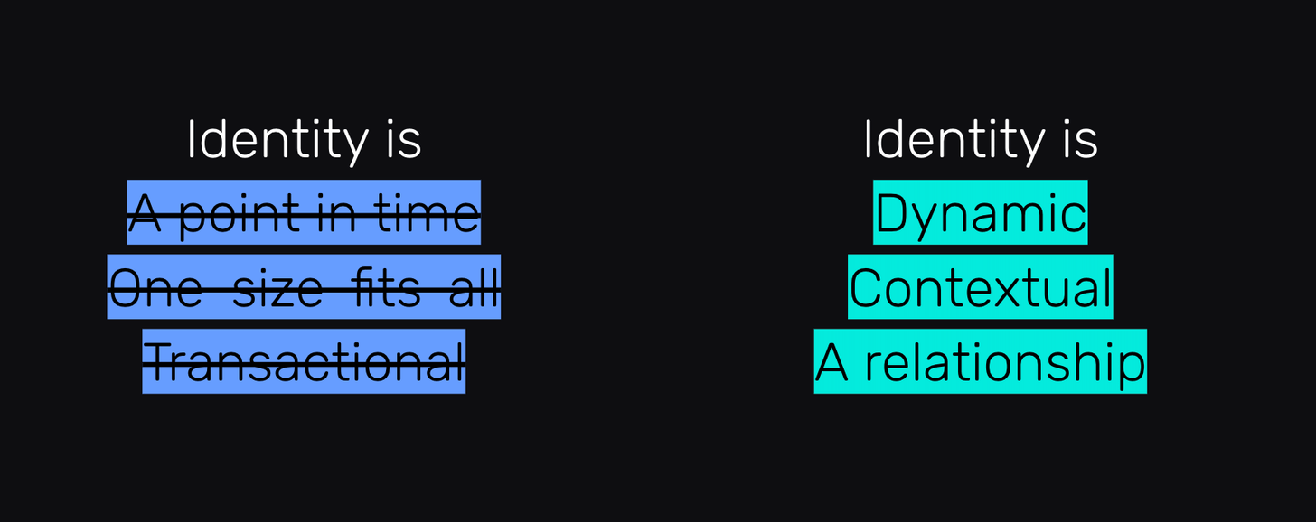One thing Rick likes to say is that identity isn’t a single point in time, or one-size-fits-all, or transactional; identity is dynamic and contextual. Identity is a relationship.