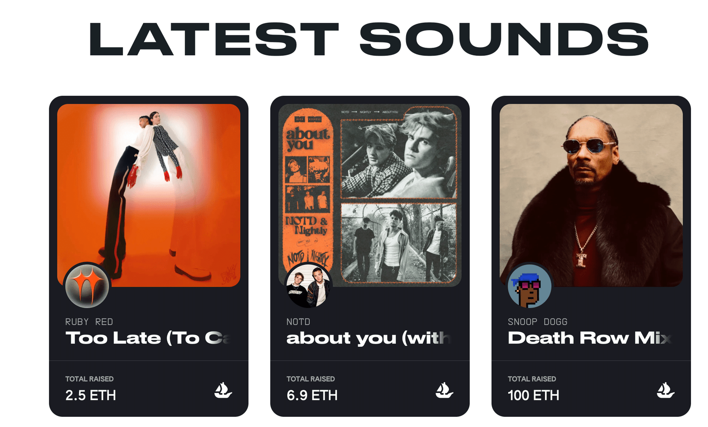 Music NFTs, for instance, let artists turn their songs into scarce digital assets. Fans can buy these assets, effectively investing in their favorite artists. Sound, for instance, is a platform that facilitates this and recently passed $1.5M in artist earnings.