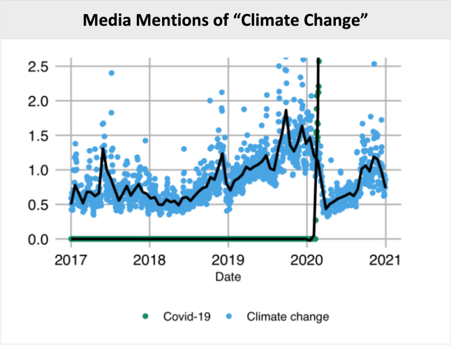 Media mentions of “climate change” dropped sharply during COVID; Source