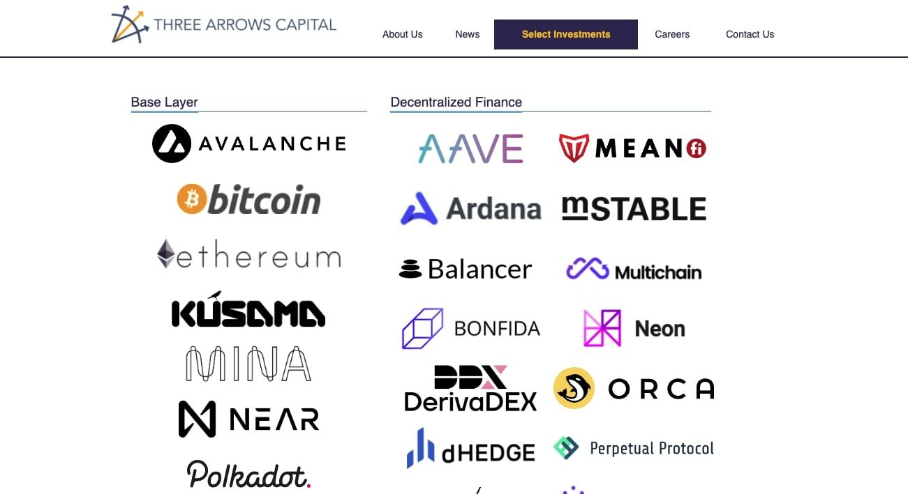 Three Arrows Capital (3AC) is a crypto fund led by Zhu Su and Kyle Davies. At its peak, 3AC had $10B+ in assets under management. Its investments include a “who’s who” list of leading blockchains and DeFi protocols: