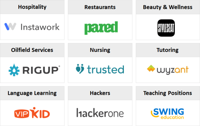 Other labor marketplaces, including most of those in the graphic above, serve more gig- or project-based work. A hotel might hire a dishwasher through Instawork, for instance, and pay by the hour.