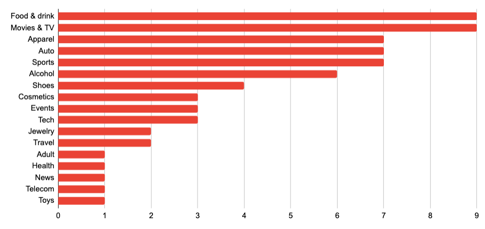 Food & drink: e.g., Papa John’s, Pepsi, Buffalo Wild Wings