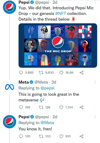 Not all launches have gone smoothly. Lacoste’s Discord server was hacked and Chevrolet’s NFT that came with a real Corvette failed to get a single bid. Pepsi’s NFTs had no utility and were ridiculed for this cringe exchange: