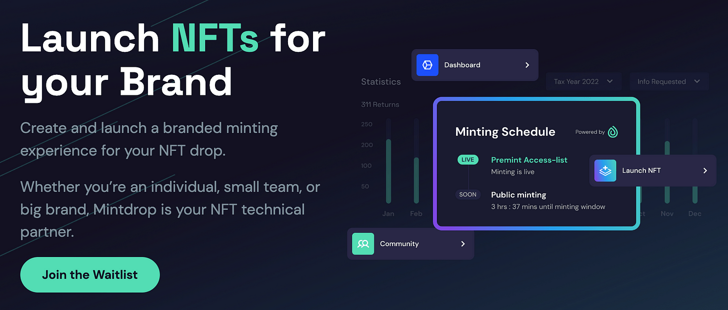 Mintdrop makes it easy for you to launch NFTs for your brand. Ian, Mintdrop’s founder, worked on top NFT projects such as Moonbirds, Premint Collector Pass, and Admit One. With Mintdrop, you can: