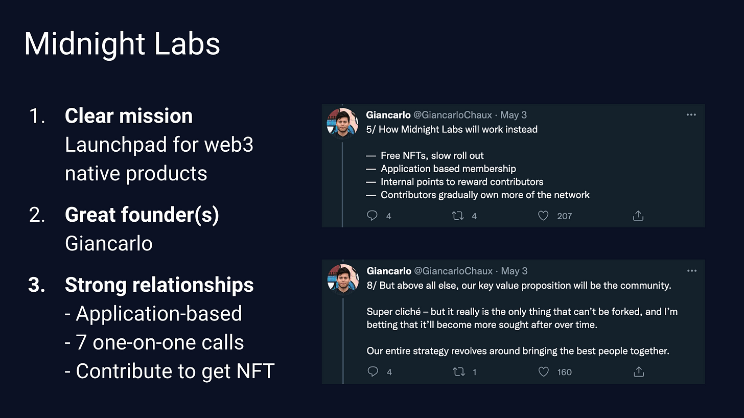 My friend invited me to join Midnight Labs – a community for NFT collectors and builders. Most NFT communities gate access behind an expensive NFT, but this community was different: