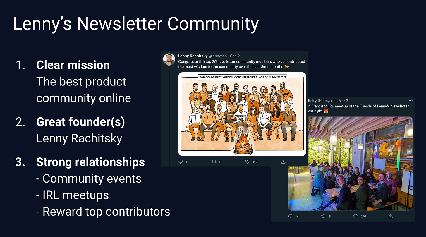 I pay for Lenny’s newsletter and visit his community maybe once a month. Although I don’t know many people there, I always get a thoughtful answer each time I ask a question. Lenny also does a great job helping members connect through online events, IRL meetups, and contributor shoutouts.