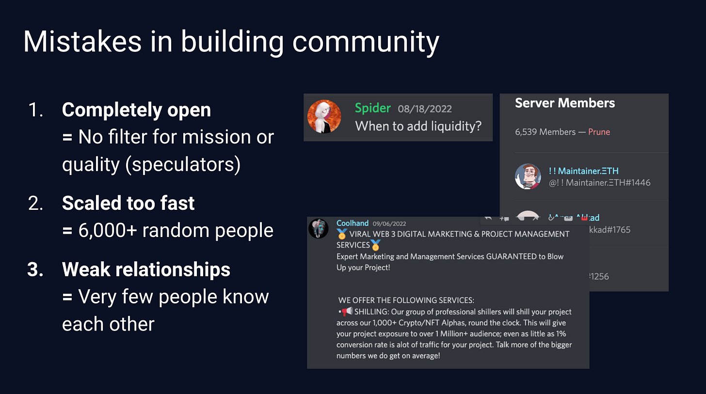 After all, many founders and CEOs personally review every employee that gets hired to their company. I believe that communities should be built the same way:
