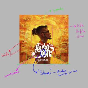 Just like the eyes are the window to the soul, the window to the soul of ‘Aisha’s Sun’ is its wonderful cover art. Vivid and smouldering, it aptly pre-empts the intensity of the album, as well as the rustic overtones that guide the project, both musically and parochially—via Kirani’s undying love for his hometown of Madina. “Everything done on this cover was deliberate,” cover art illustrator and designer Jesse Jay tells me over a Google Meet call, going on to breakdown the importance of the elements that make up the cover.
