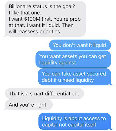 There’s a lot of jargon. Essentially the crux of the text is to use money you make to buy assets, then borrow money against those assets for stuff you want to buy. It creates tax efficiency, and is a huge psychological shift.