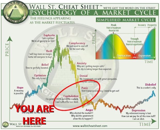 It’s repeated for all of human history. Right now we’re approaching the red on the chart. But before we know it the anger and panic of the red market cycle psychology will turn into green again.