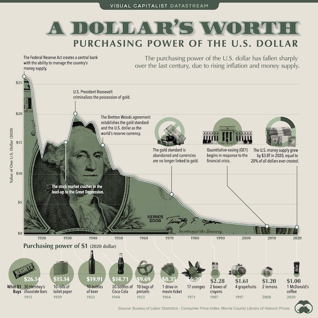 This is called debasement of currency. So a dollar today is worth much less in the future.